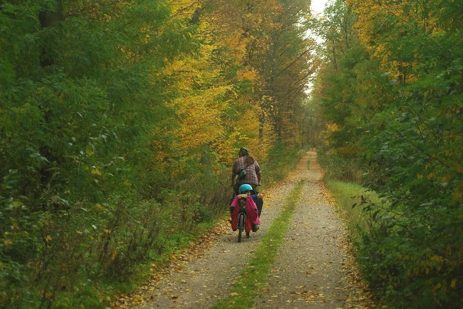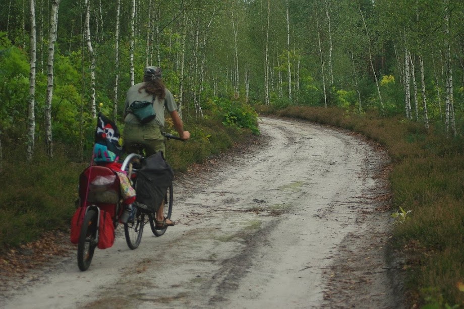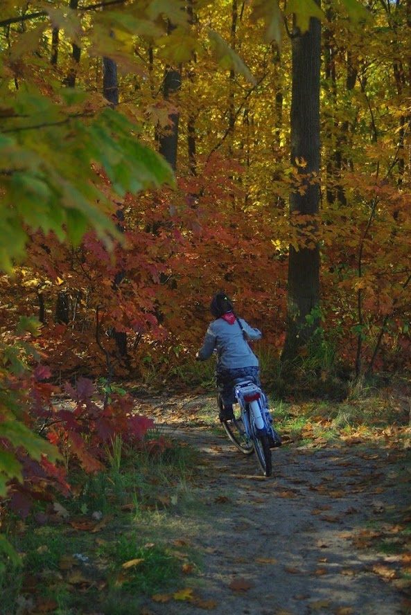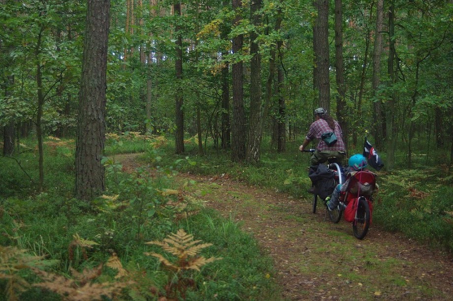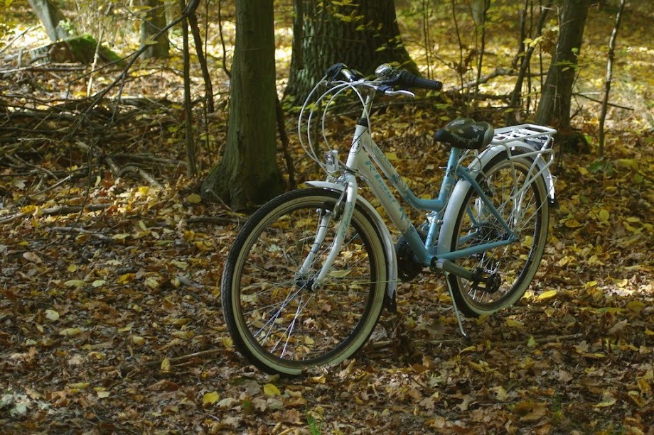 Chyba nie pisałam na blogu jeszcze o nowym rowerze Kluski, który ćwiczy od wakacji. Od razu z za małych 16 cali przeskoczyła na 24 cale. Rower producent opisał jako powyżej 125cm, ona ma ponad 130, długie nogi, więc był na styk i wydaje się, że jej odpowiada. W każdym razie na lżejszych przełożeniach spokojnie daje radę po lesie. Dystans ponad 14km (całościowy), więc niedaleko, ale też i niełatwy terenowo na sporym odcinku.Rower jest z tańszych i cięższych, więc daleka jestem od polecania go jako najlepszy z możliwych, ale powiedzmy, że jak się przy nim trochę podłubało, to nadaje się do jazdy.