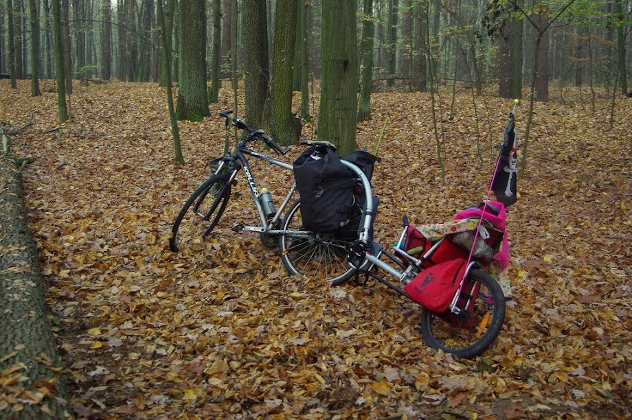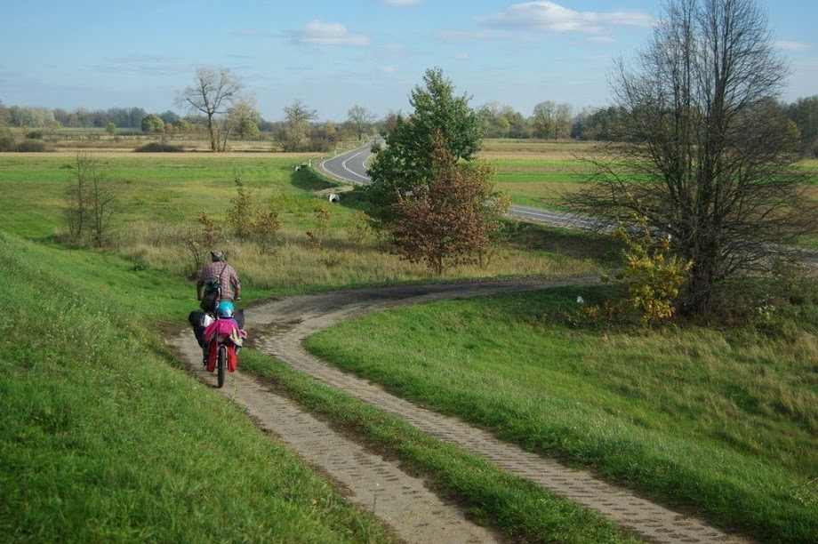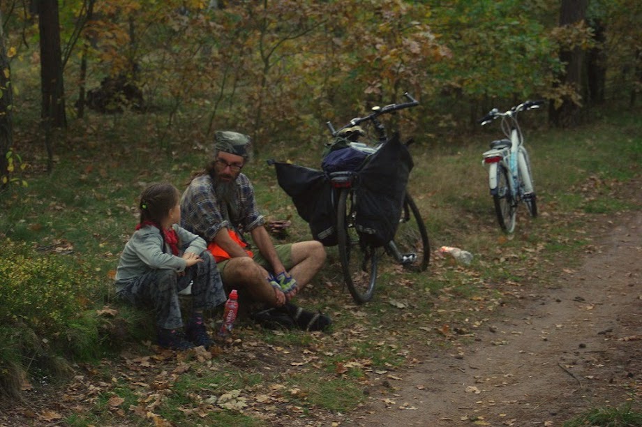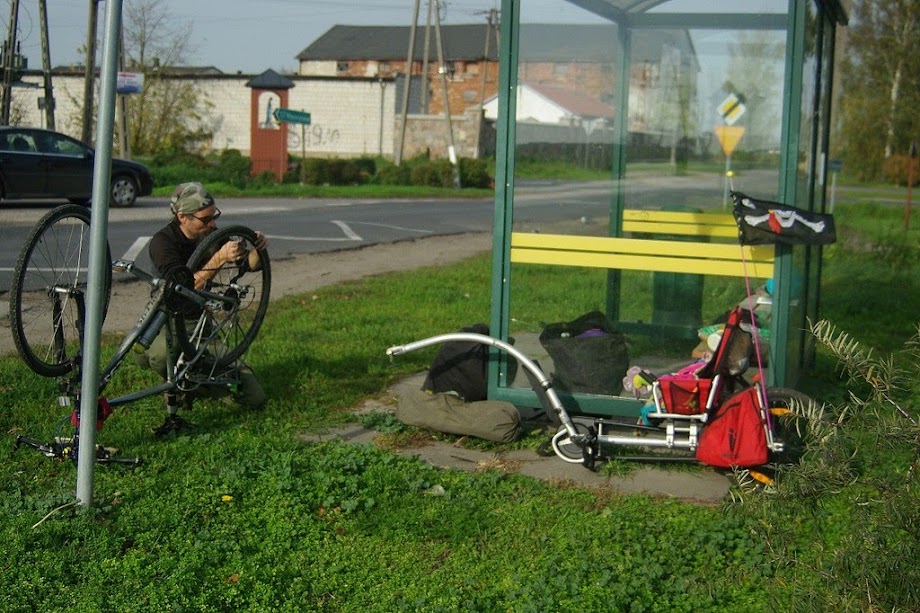 Już na początku zaliczamy małą awarię szprych roweru tatusia i mamy przymusowy postój. Ale że tym razem jesteśmy lepiej przygotowani, bo mamy ciepłą zupę w termosie, więc czas szybko mija.