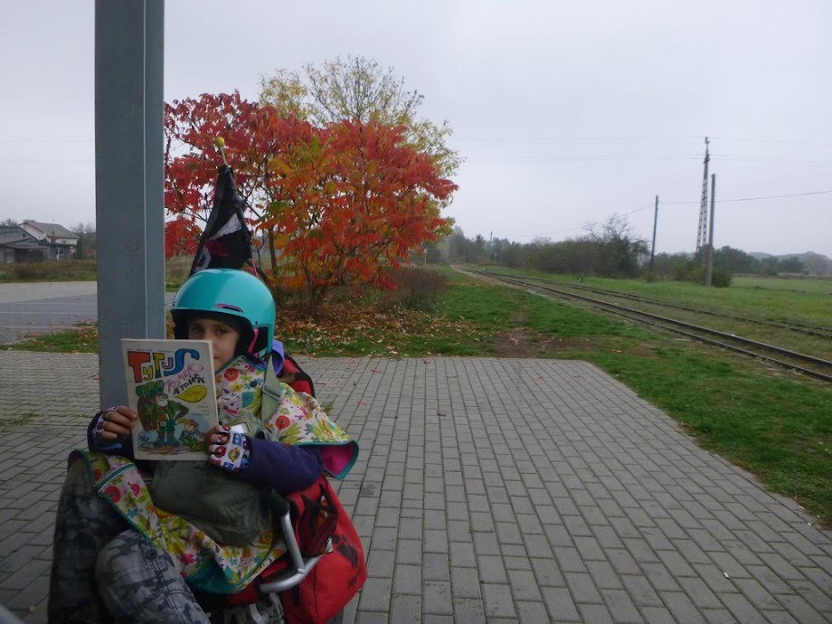 Wracamy przez Tułowice na skróty, bo robi się mokrawo i zimno. Po drodze Kluska czyta Komisk i jakoś czas leci.