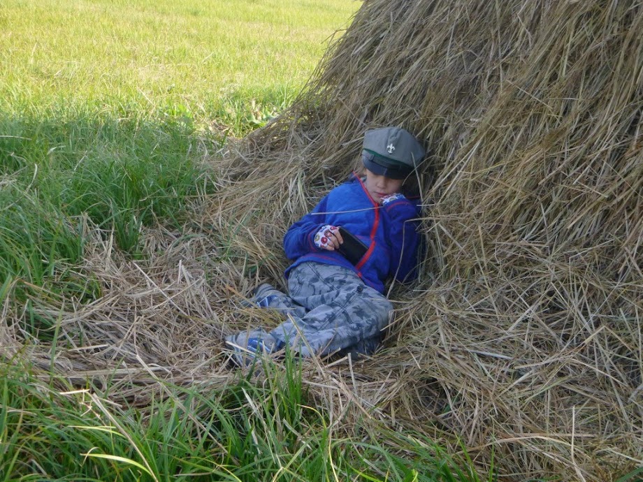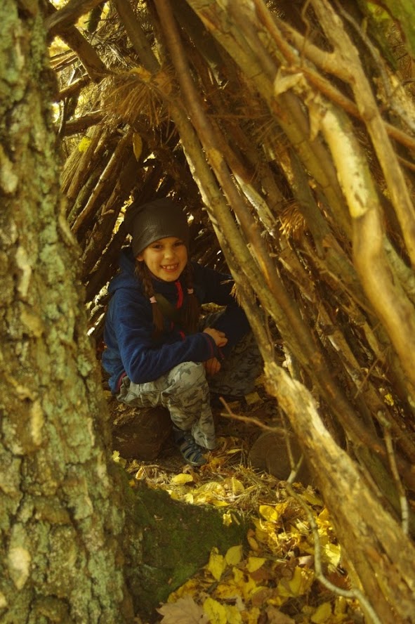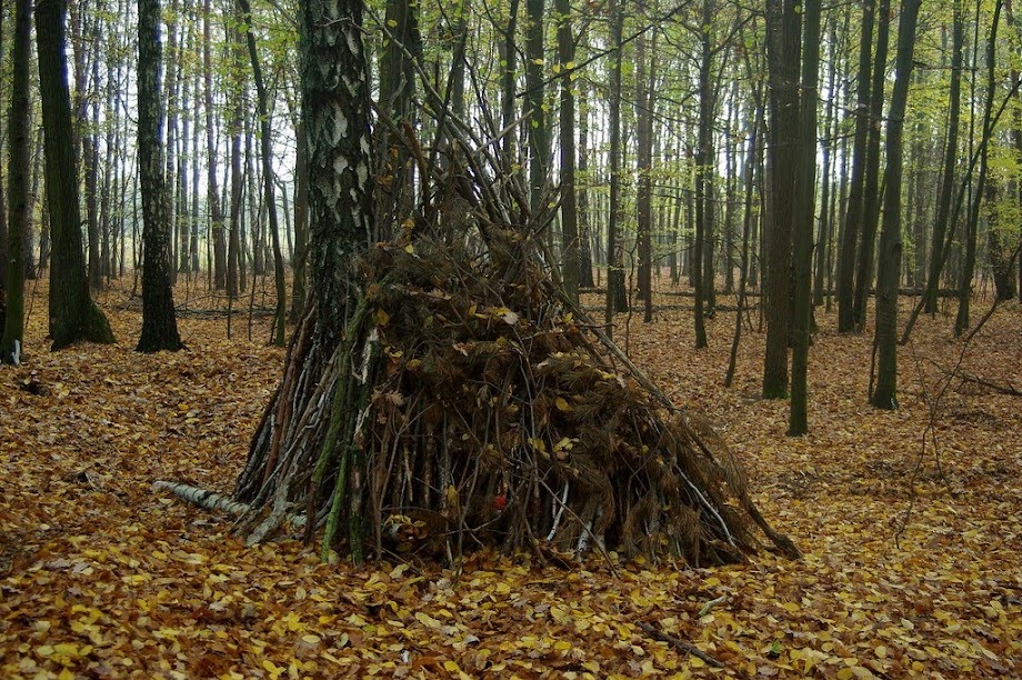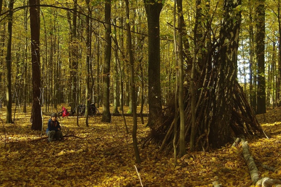 Kluska marudzi, że chce te szałasy budować, to wracamy do tego z wycieczki nr 7 i bawimy się jeszcze raz. Liści zdecydowanie mniej, trochę chłodniej, październik w pełni.10. Namiotówka nad Wisłą #2
