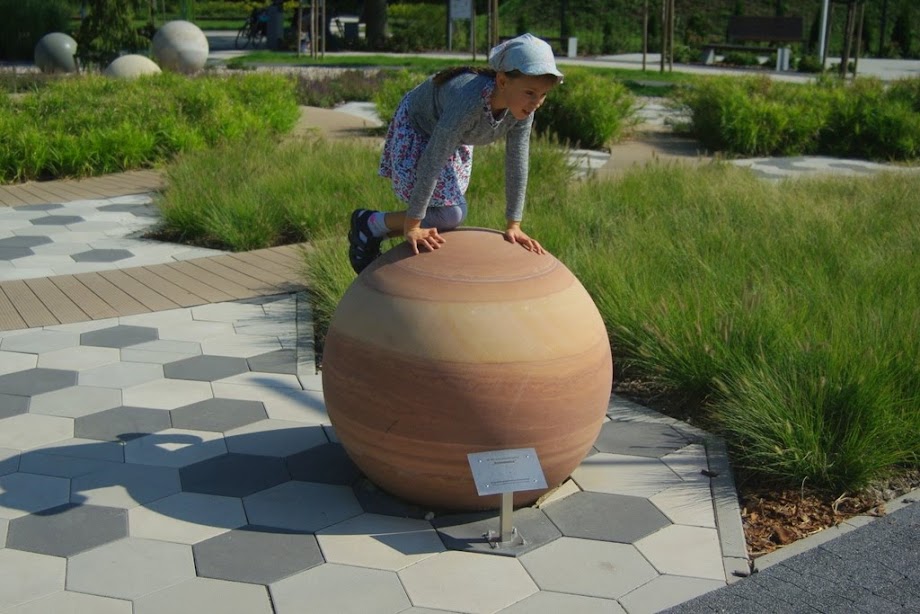 W Grodzisku przybył nowy plac zabaw, ale fajniejsze są kule obok niego. Dziecko może się nauczyć rodzajów kamieni, są granity, marmury, piaskowce, jakieś dziwne zlepieńce, naprawdę warto. Tym bardziej że przypomina to wizualnie układ planetarny i można zrobić mini-lekcję astronomii. :)