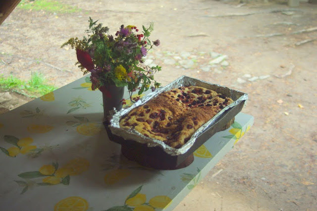 Pogodę mieliśmy świetną niemal cały czas, dopiero ostatnie dwa dni zaczęło padać, więc z ogniska nici, przenieśliśmy się pod wiatkę i z nudów zaczęliśmy gotować i piec ciasta. Pierwszy raz zrobiliśmy ciasto drożdżowe. Zakalec nawet nie był duży, a miny częstowanych tym ciastem turystów były bezcenne. Ten piecyk na drewno z piekarnikiem jest naprawdę mega!