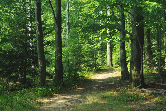 Z naszych górskich rozrywek - ponownie weszliśmy na Rotundę (niektórzy z nas kilka razy), a także poszłam z Kluską na Kozie Żebro. Trochę tam wycięli drzew, dzięki czemu nawet widać stamtąd inne góry. Nawet samą Lackową w oddali. Może w tym sezonie znów uda się tam dotrzeć. Mnie udało się też samotnie dotrzeć na górę Dział, gdzie nie ma szlaku i trzeba się tam dostać luzem przez las i drogami od zwożenia drewna. Drogę skutecznie utrudniały mi smaczne jeżyny. Założyłam też tam skrzynkę opencaching.