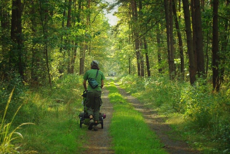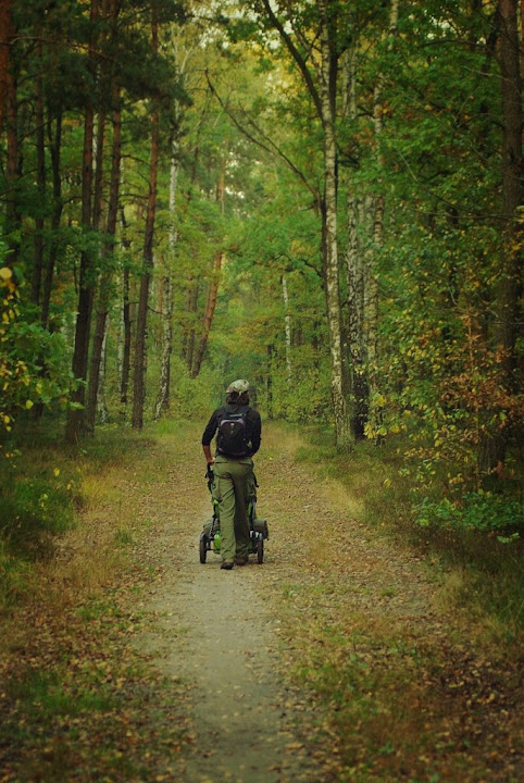 Niestety na trasie wycieczki wyrosła nam ekipa ścinająca drzewa, więc musieliśmy zmienić trasę i poszukać innej polanki. Miało być miejsce na rozbicie namiotu, a to już nie było takie proste, bo w lesie przytartacznym podłoże jest często z rowami wzdłuż nasadzeń. Ciężko po tym chodzić, a co dopiero ustawiać coś, co w założeniu ma mieć płaską podłogę. Ale w końcu znaleźliśmy.