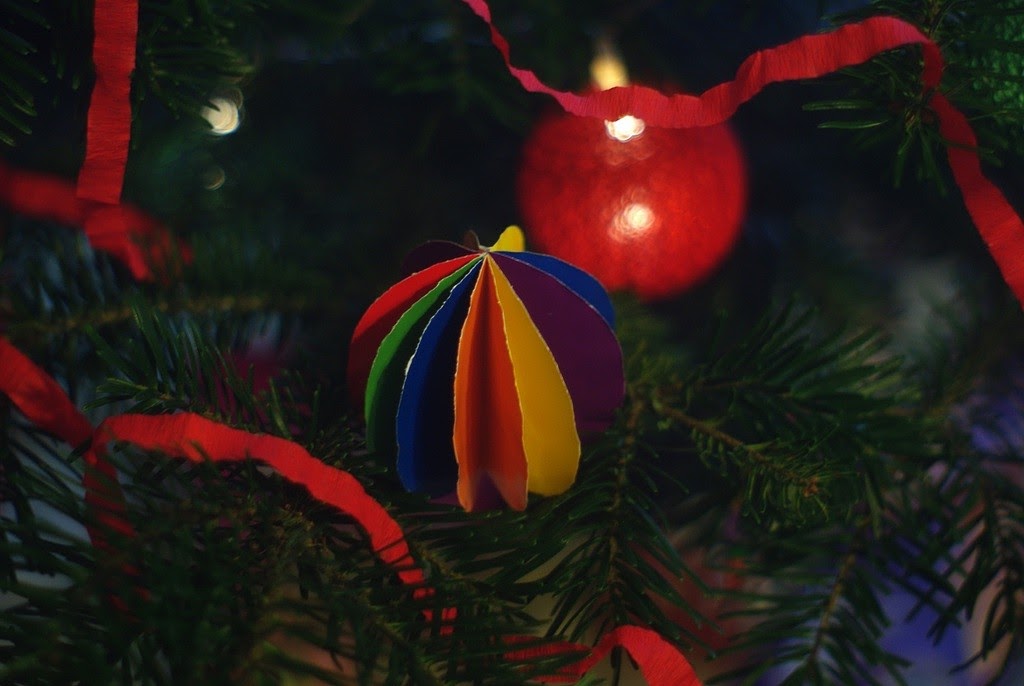 Co do reszty, miałam wielki plan choinkę ubrać ozdobami wspólnie robionymi z dzieckiem. Częściowo się udało, to znaczy np. narysowałyśmy skrzata i potem go robiłam wg projektu kolorystycznego Kluski. Łatwiejsze ozdoby pomagała mi kleić i wycinać. W międzyczasie przypomniał mi się genialny patent na szybki łańcuch z krepiny, tj. obcinanie jej końców grubości 0,7cm i oplecenie nim drzewka. Roboty minuta, a efekt moim zdaniem bardzo fajny.