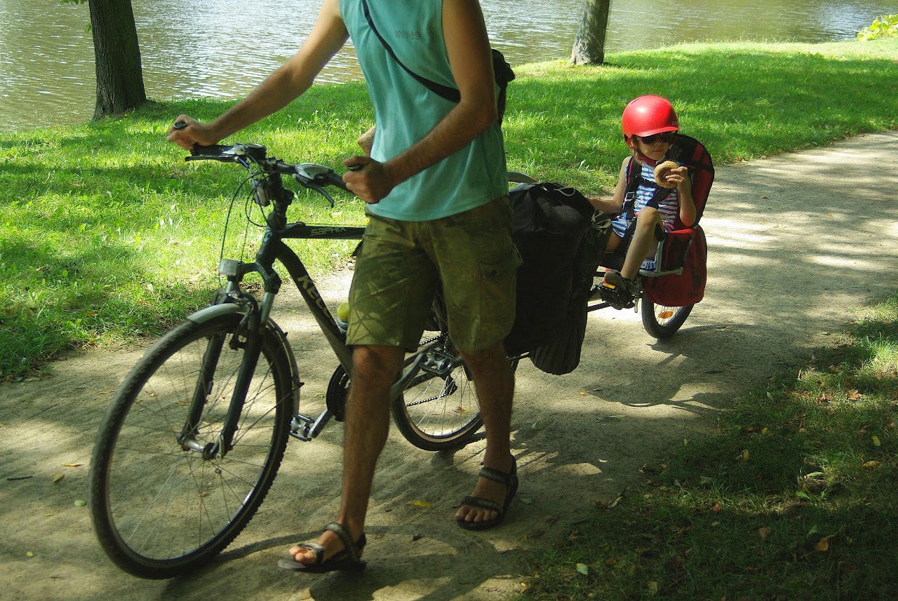 Jeśli ktoś zapyta, co wozimy w sakwach, to odpowiem, że oprócz śpiworów, karimat i namiotu - głównie żarcie. Nieprawdopodobne, jaki Kluska ma ostatnio apetyt, zwłaszcza pod wieczór. Musieliśmy nawet podjechać o Biedronki uzupełnić zapasy, bo zwyczajnie na kolację Kluska zeżarła nasze śniadanie i zostały tylko resztki "na czarną godzinę" i kawa zbożowa. czy ona znów zaczyna rosnąć?