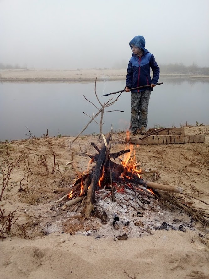 W naszej okolicy płynie sobie rzeka Rawka, gdzie czasem na zakrętach są dzikie plaże. Jedna z takich plaż, uwielbiana przez kajakarzy, ale i innych mieszkańców, latem jest tłumnie odwiedzana. Dlatego wybraliśmy się jesienią, żeby mieć odrobinę prywatności. A i tak było dużo ludzi, bo byliśmy w weekend.