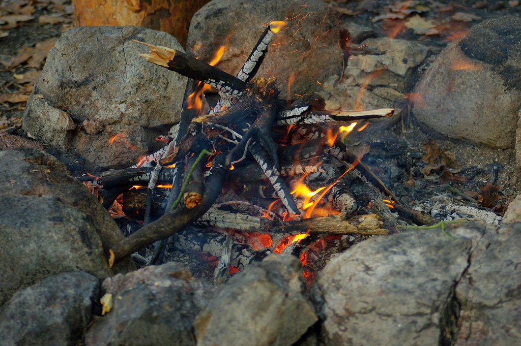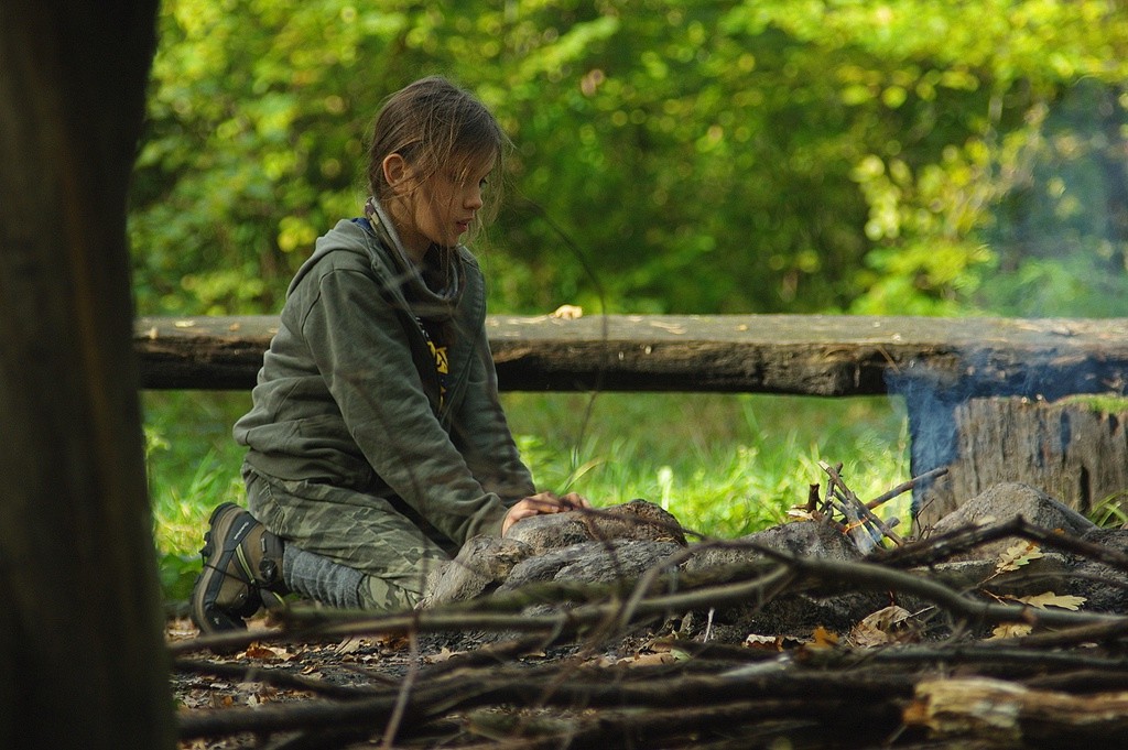 Robimy ogniska, Kluska oczywiście sama umie rozpalać. Osiem lat. No i co.