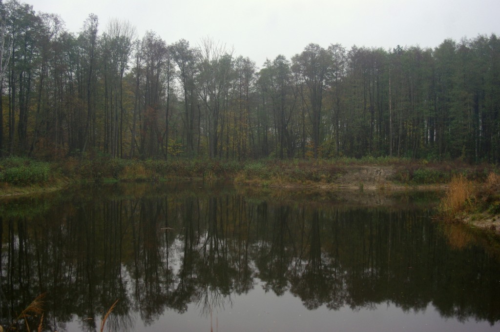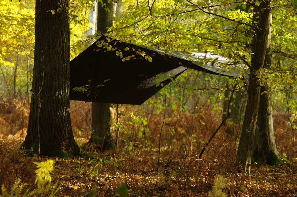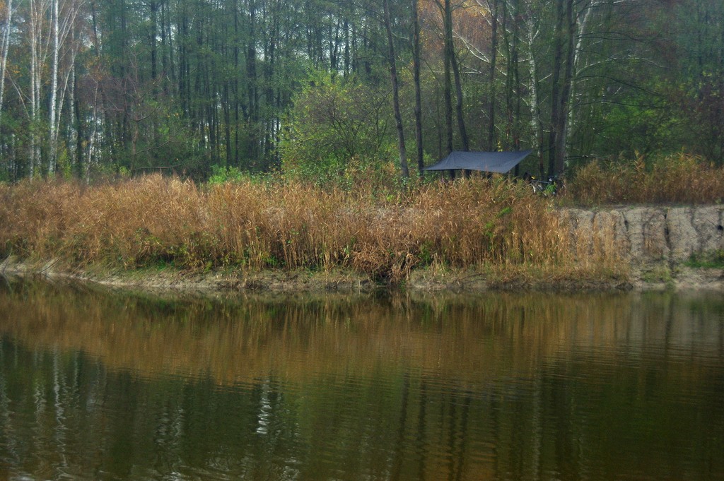 W listopadzie zwiedzamy pewną opuszczoną żwirownię. Dopada nas deszcz, więc chowamy się pod tarpem.