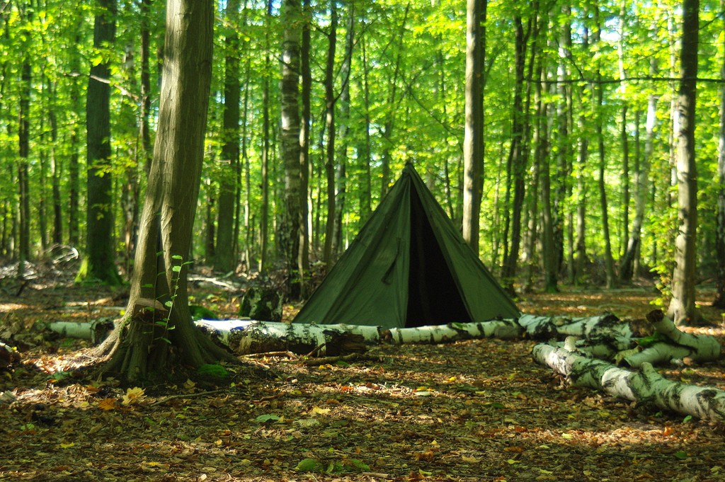 Szałas znaleziony wcześniej i nareperowany przetrwał i ma się dobrze.