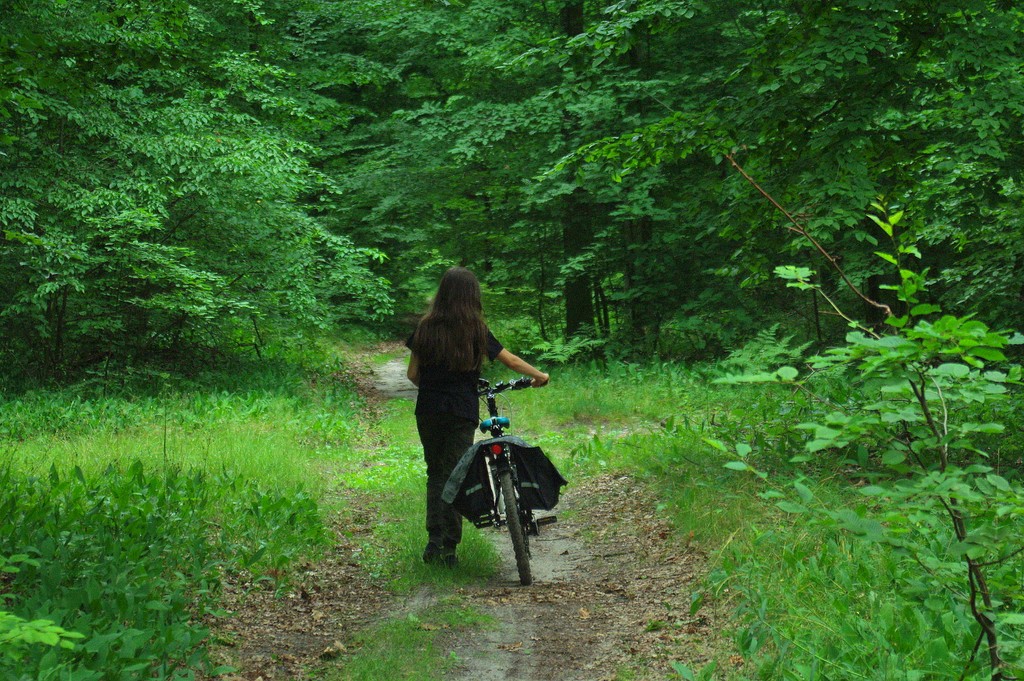 Wróciliśmy pogryzieni przez komary i trochę jednak zmęczeni słońcem. Potem przez parę tygodni bywaliśmy w nudnych, cywilizowanych miejscach lub odwiedzaliśmy znajomych (absolutnie nienudnych!). Czasem wyciągałam Kluskę na przejażdżkę po lesie, ale tam bez moskitiery nie dawało rady się zatrzymać.