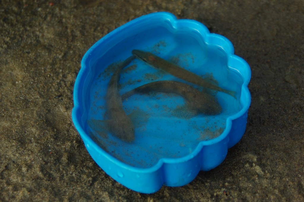 W wysychającej kałuży znaleźliśmy ryby. Postanowiliśmy je uratować. Tu zdjęcia z akcji ratowniczej. Dobrze, że zabraliśmy duże foremki.