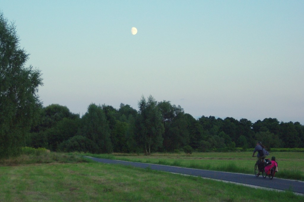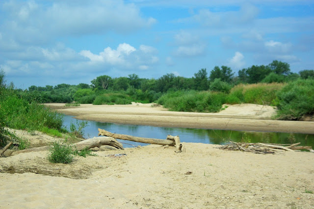Postanowiliśmy pojechać na plażę kolejny raz, znów przez Brochów, ale na miejscu okazało się, że przestrzeliliśmy poziom rzeki i na naszej plaży był metr wody... zanocowaliśmy więc pod wałem i wróciliśmy do domu.