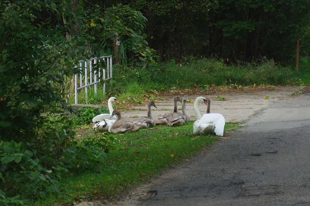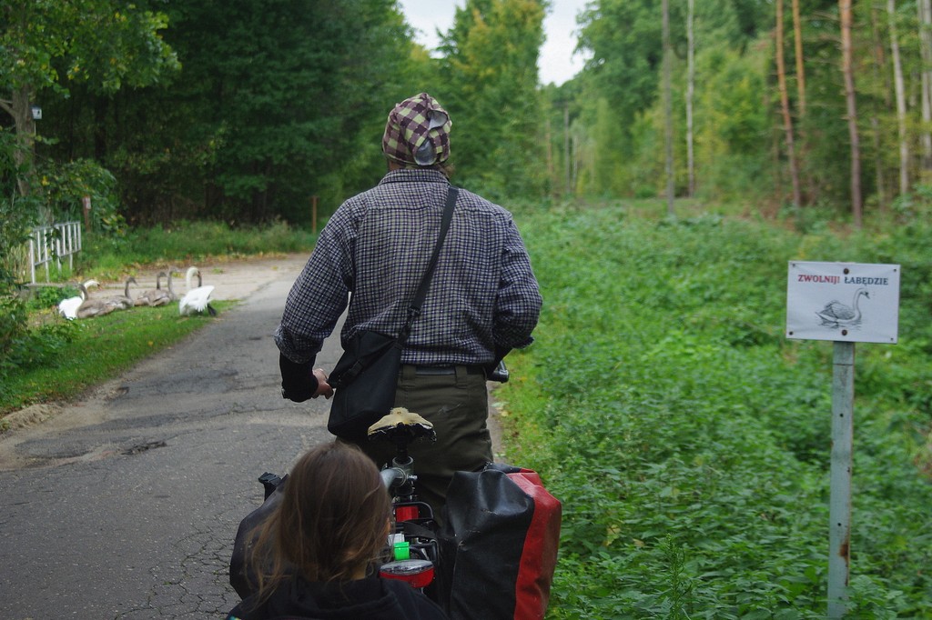 Jedziemy jeszcze kilka kilometrów na zachód. To chyba ostatni rok przyczepki Weehoo, wagowo jeszcze Kluska daje radę, ale jej nogi już ledwie się mieszczą. Po drodze spotykamy rodzinę łabędzi.Ognisko pełne wolnych dzieci, nikt nie robi dram, że moje dziecko wlazło na drzewo, choć uważam, że jednak trochę za cienkie gałęzie (potem wlazła na takie, gdzie gałęzie były grubsze i już się nie przejmowałam).Jeździmy do parku w Żyrardowie na pokemony i robić zdjęcia kwiatkom.W parku jest dużo pokemonów. ;)Odwiedzamy też nowe ekościeżki na mieście.Jedziemy też na wycieczkę do Lasu Bielańskiego, gdzie przewodnik ma nas oprowadzać po lesie. Szybko okazuje się, że póki co to znamy ten las lepiej od przewodnika i żegnamy go, jadąc na ruinki carskich koszar w lesie i po inne fajne atrakcje tego miejsca (potem wyszło, że przewodnik wcale ich nie pokazywał, bo pewnie nawet nie wiedział o ich istnieniu jako przyjezdny).Dawna brama do lasuMierzymy też obwody starych dębów o gigantycznych żołędziach (jakiś inny gatunek?)